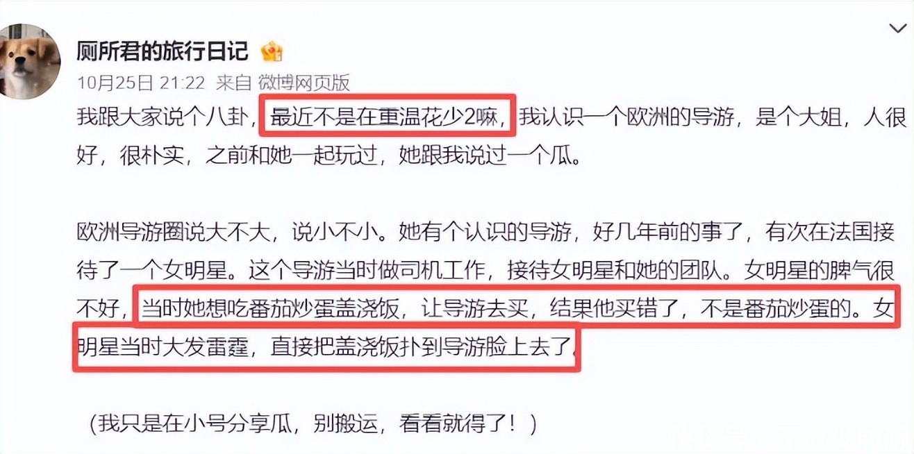 10月27日,一则来自欧洲导游圈的消息震惊网络。据传,在录制综艺《花少2》期间,某位人气极高的女艺人于法国突发食欲,想吃番茄炒蛋盖浇饭。