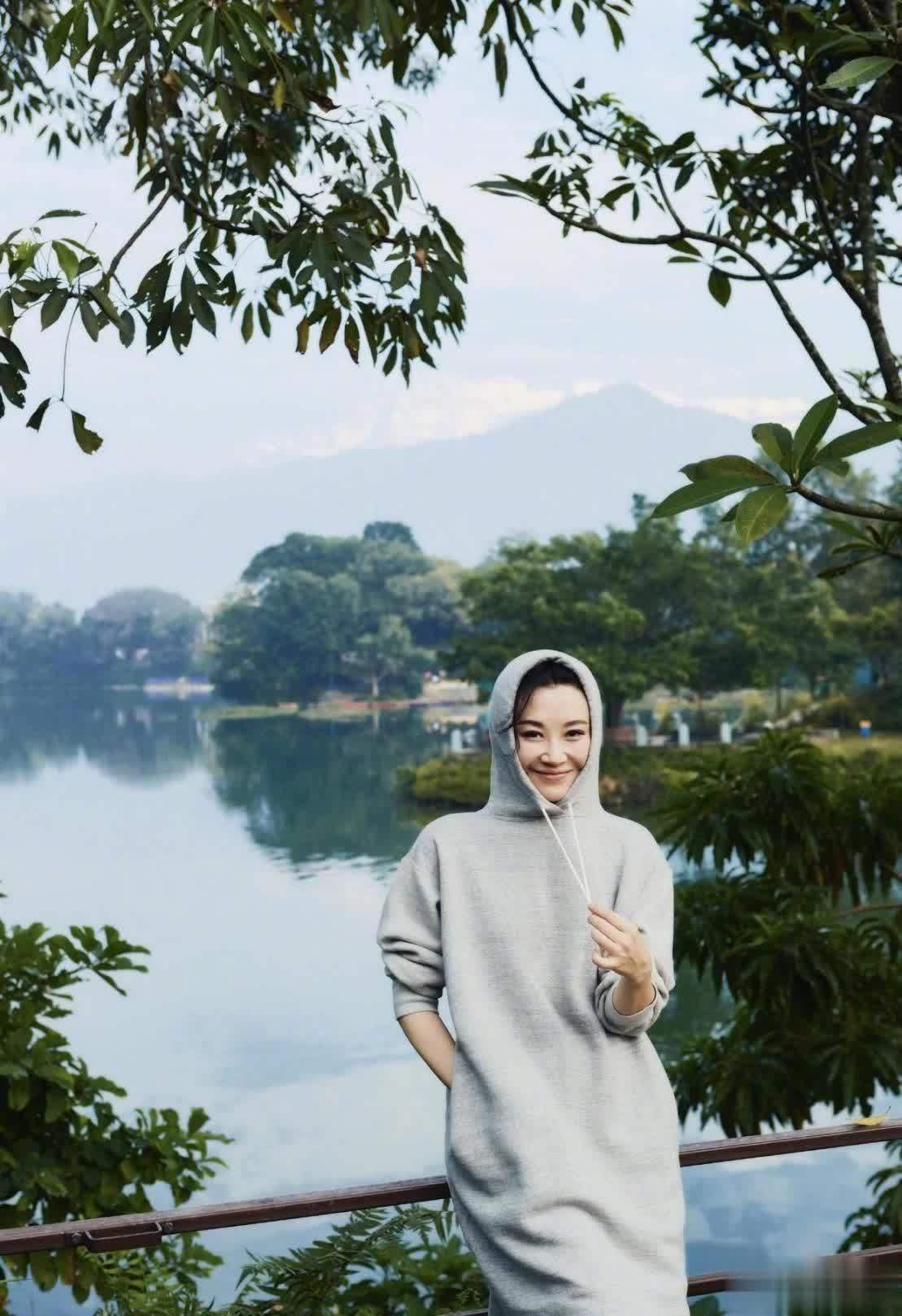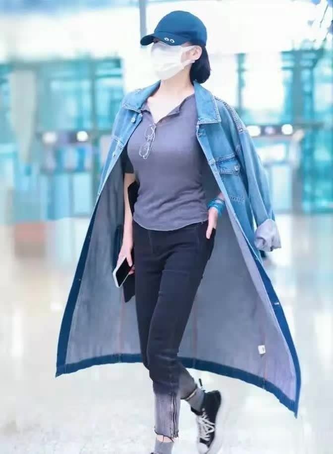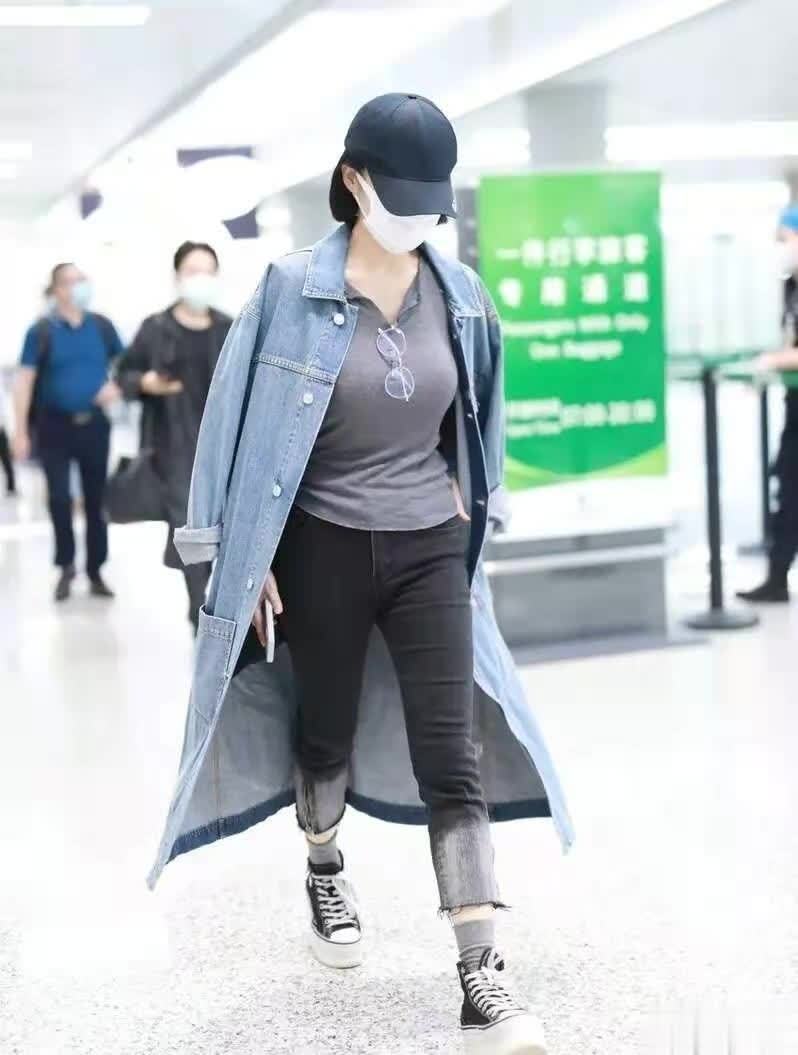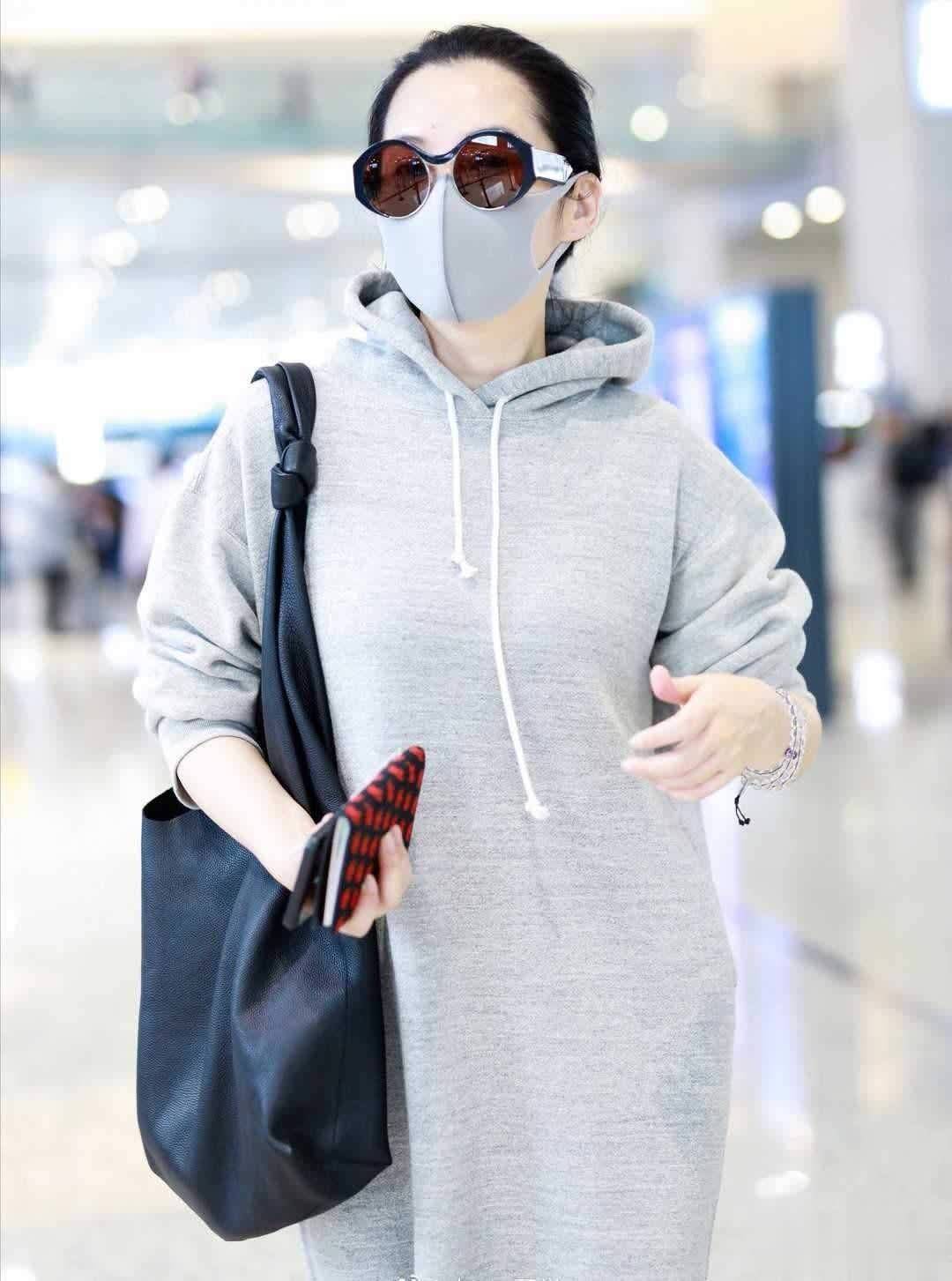 许晴任性穿卫衣裙长筒靴走机场,打扮似20岁小姑娘